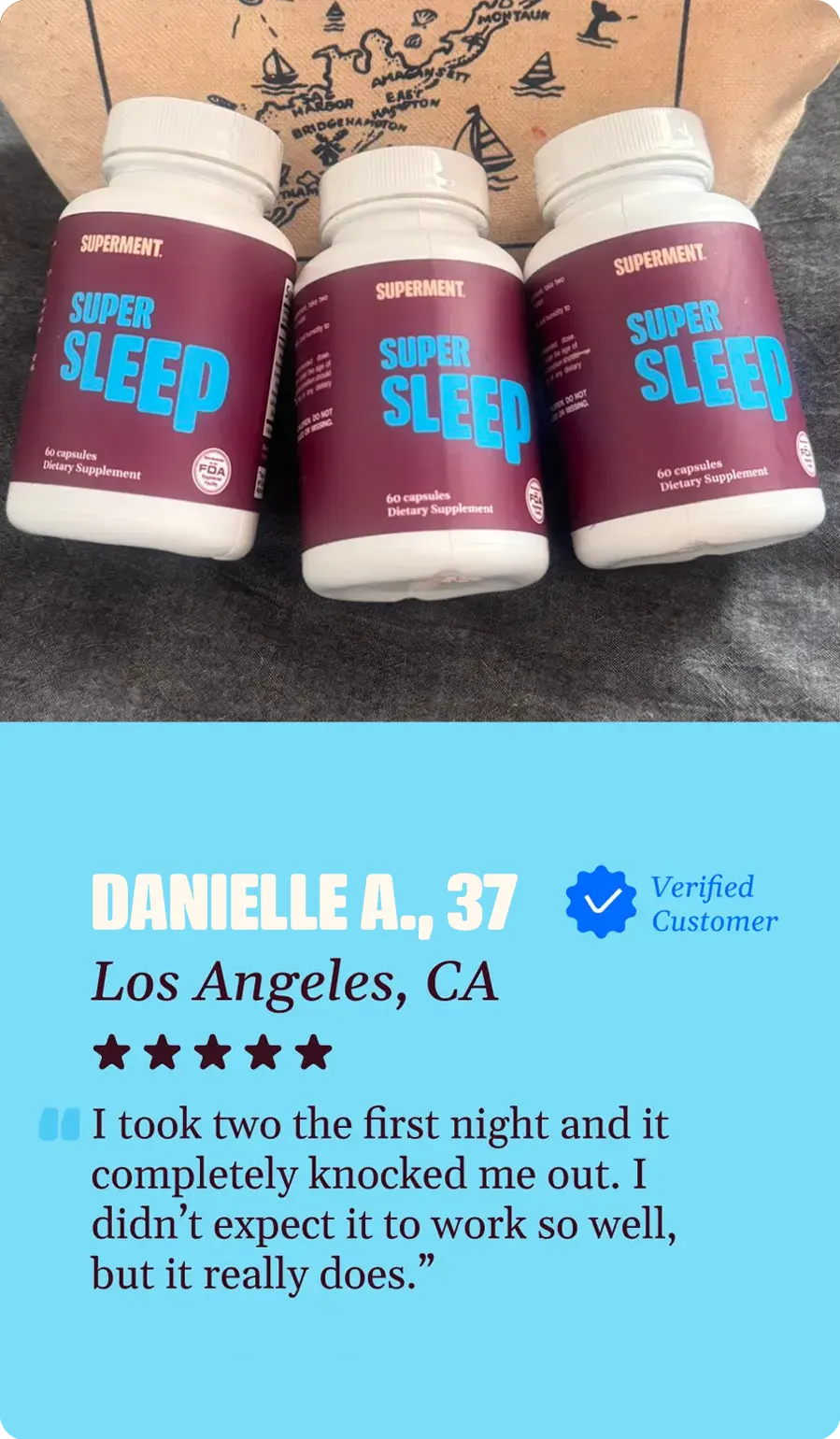 Super Natural Sleep is a supplement formulated with natural ingredients that relax the nervous system and guide the user into deep, restorative sleep. It does not contain melatonin or harsh chemicals. Super Natural Sleep is manufactured in the United States by an FDA registered and GMP-compliant laboratory. All product’s quality, safety, and compliance certifications are managed by our manufacturing partner. This product is not intended to diagnose, treat, cure or prevent any disease. Always consult your physician before starting any dietary supplement, especially if you are taking medications, are pregnant, or have a medical condition. Super Natural Sleep is part of the commercial portfolio of Superment.